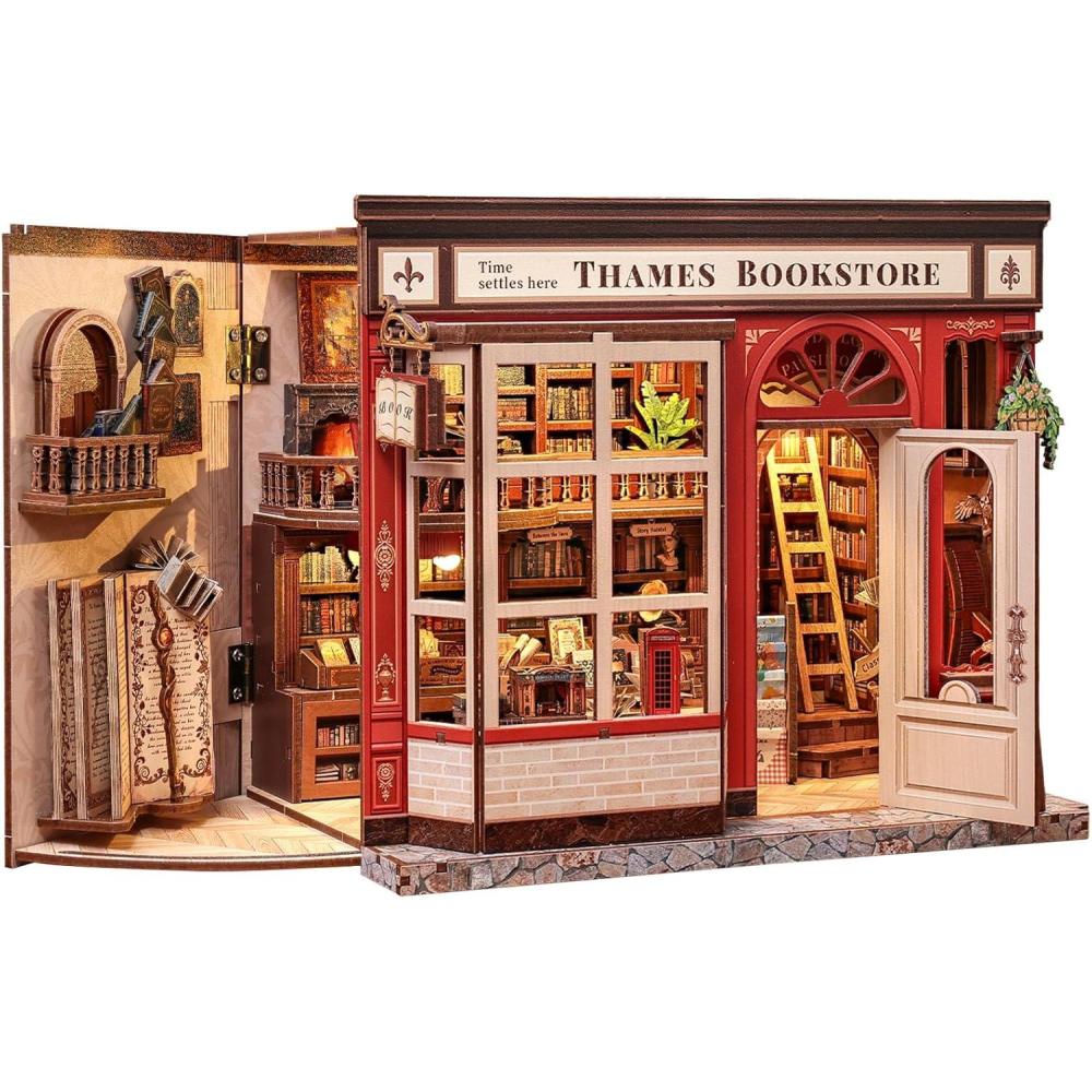 CUTEBEE Book Nook Kit, DIY Miniature House Kits for Adult and Teens, Dollhouse Mini Booknook Music House Bookshelf, DIY Craft Gifts for Family and Friends(Memories Music Bookshop)(Thames Bookstore)