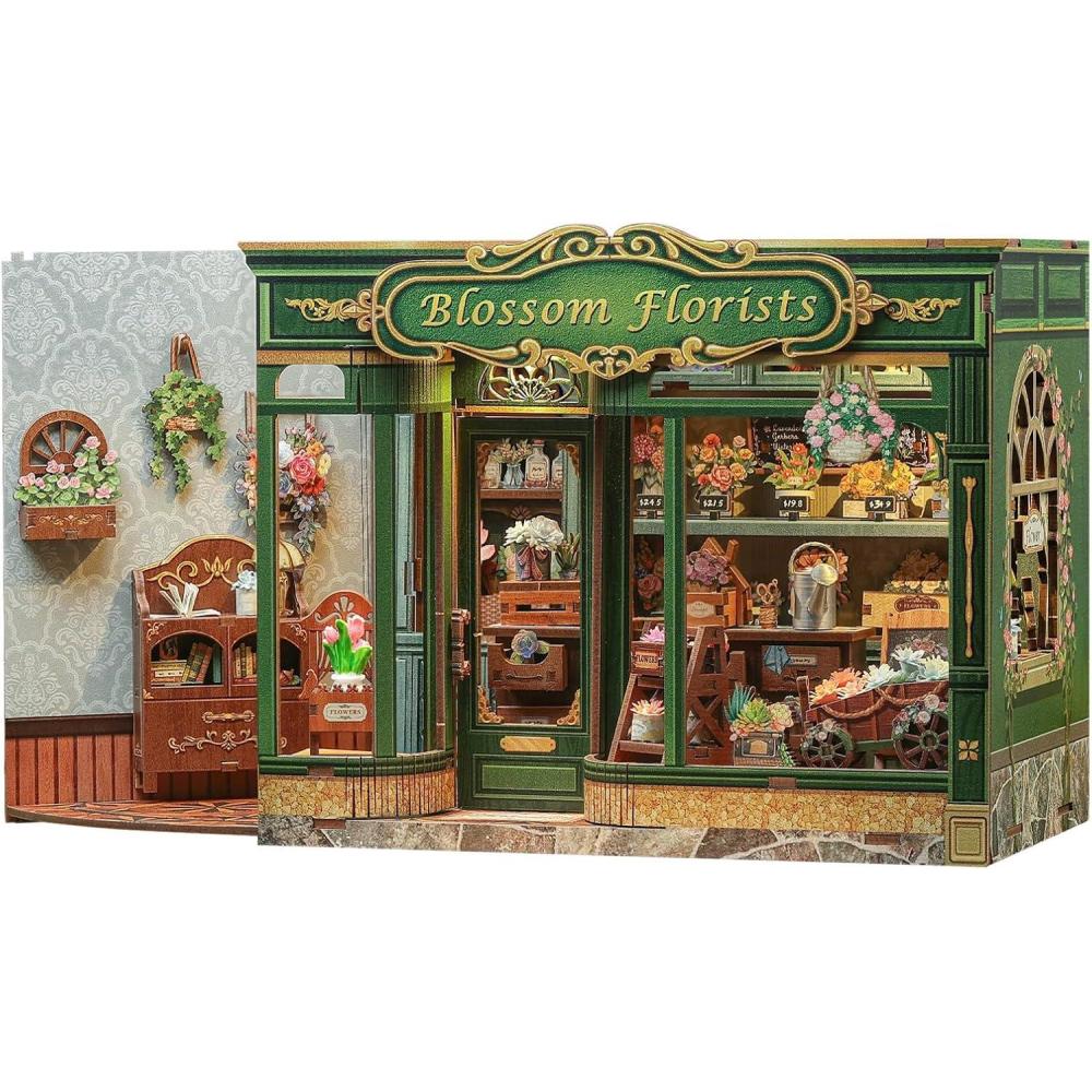 CUTEBEE Book Nook Kit, DIY Miniature House Kits for Adult and Teens, Dollhouse Mini Booknook Music House Bookshelf, DIY Craft Gifts for Family and Friends(Memories Music Bookshop)(Blossom Florists)
