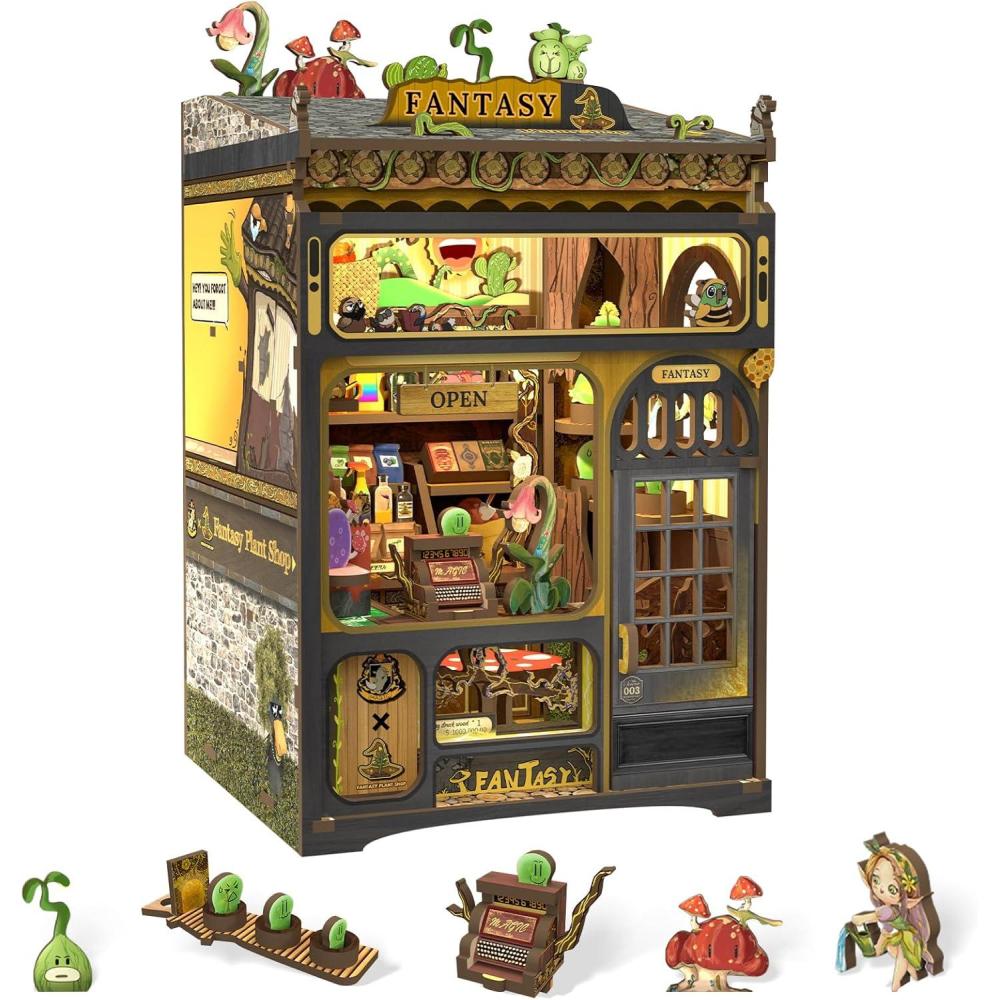 CUTEBEE Book Nook Kit, DIY Miniature House Kits for Adult and Teens, Dollhouse Mini Booknook Music House Bookshelf, DIY Craft Gifts for Family and Friends(Memories Music Bookshop)(Fantasy Plant Shop)