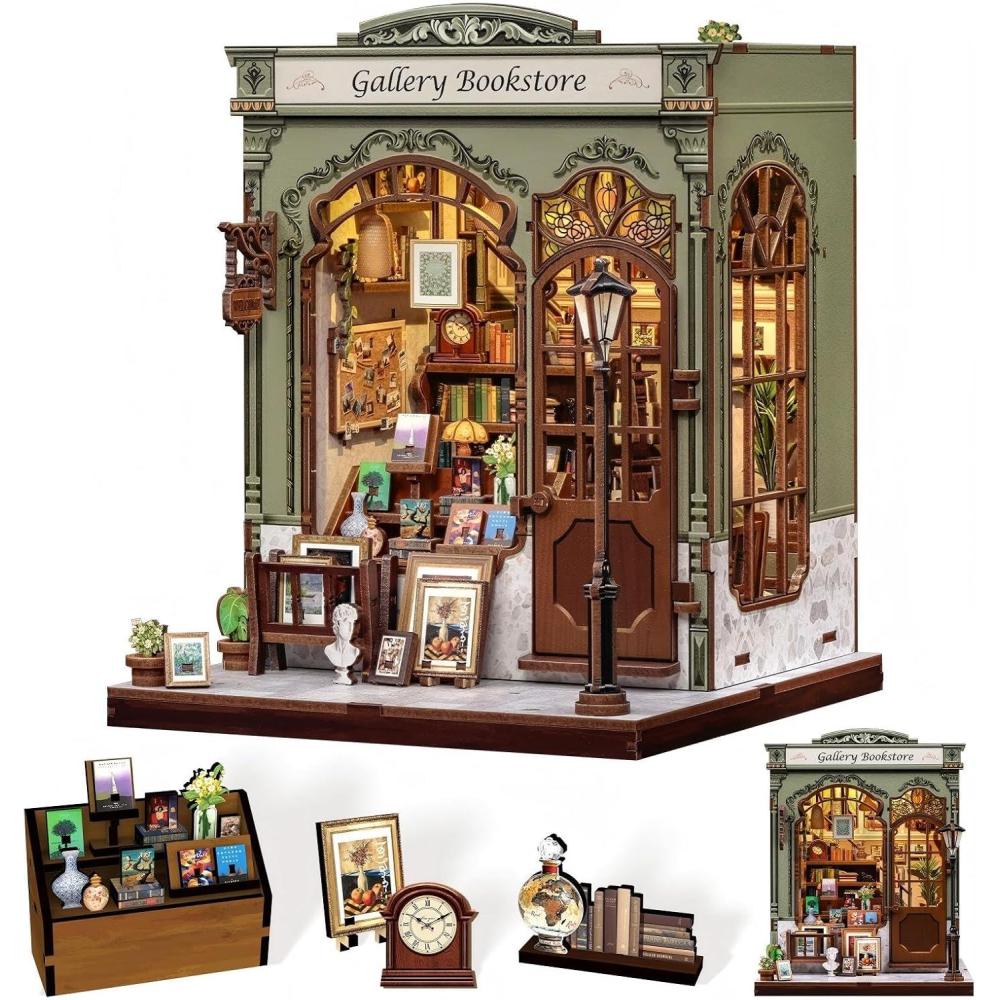 CUTEBEE Book Nook Kit, DIY Miniature House Kits for Adult and Teens, Dollhouse Mini Booknook Music House Bookshelf, DIY Craft Gifts for Family and Friends(Memories Music Bookshop)(Gallery Bookstore)