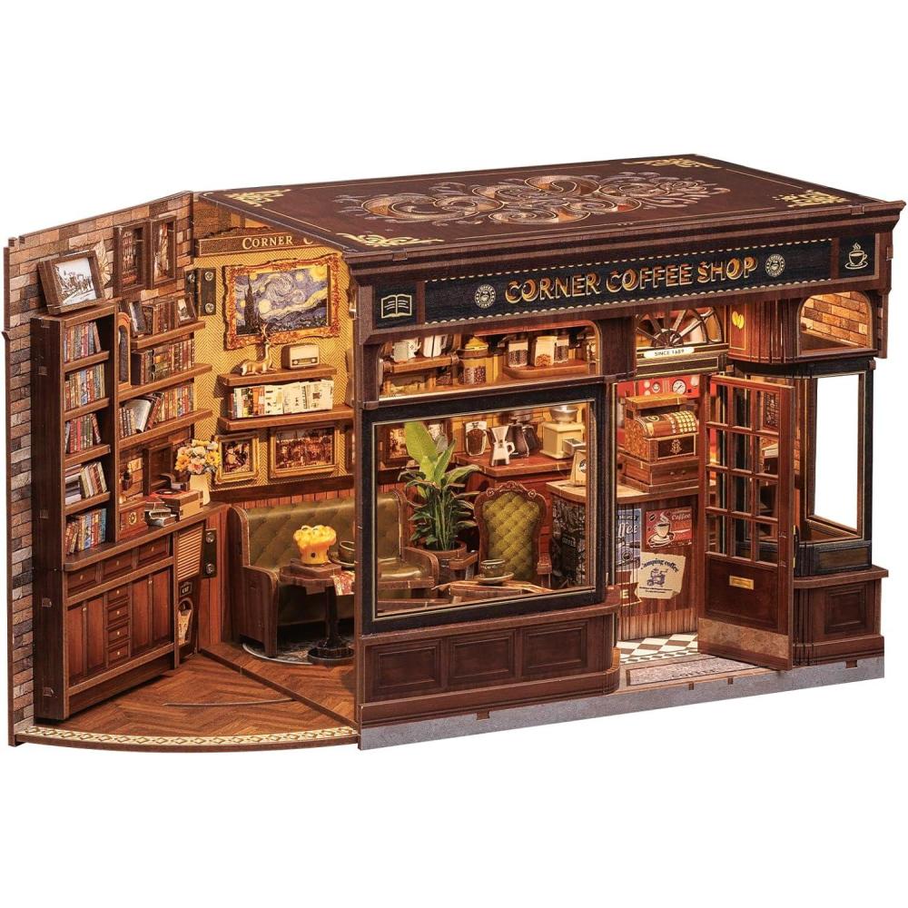 CUTEBEE Book Nook Kit, DIY Miniature House Kits for Adult and Teens, Dollhouse Mini Booknook Music House Bookshelf, DIY Craft Gifts for Family and Friends(Memories Music Bookshop)(Corner Coffee Shop)