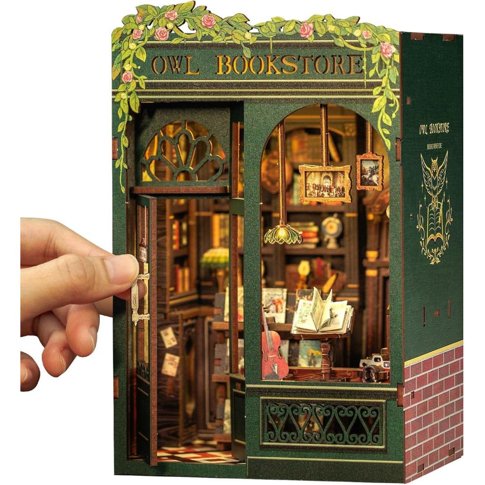 CUTEBEE Book Nook Kit, DIY Miniature House Kits for Adult and Teens, Dollhouse Booknook Tiny House, Bookshelf 3D Wooden Puzzle, DIY Craft Gifts for Family and Friends (Bella’s Ice Cream)(Owl Bookstore)