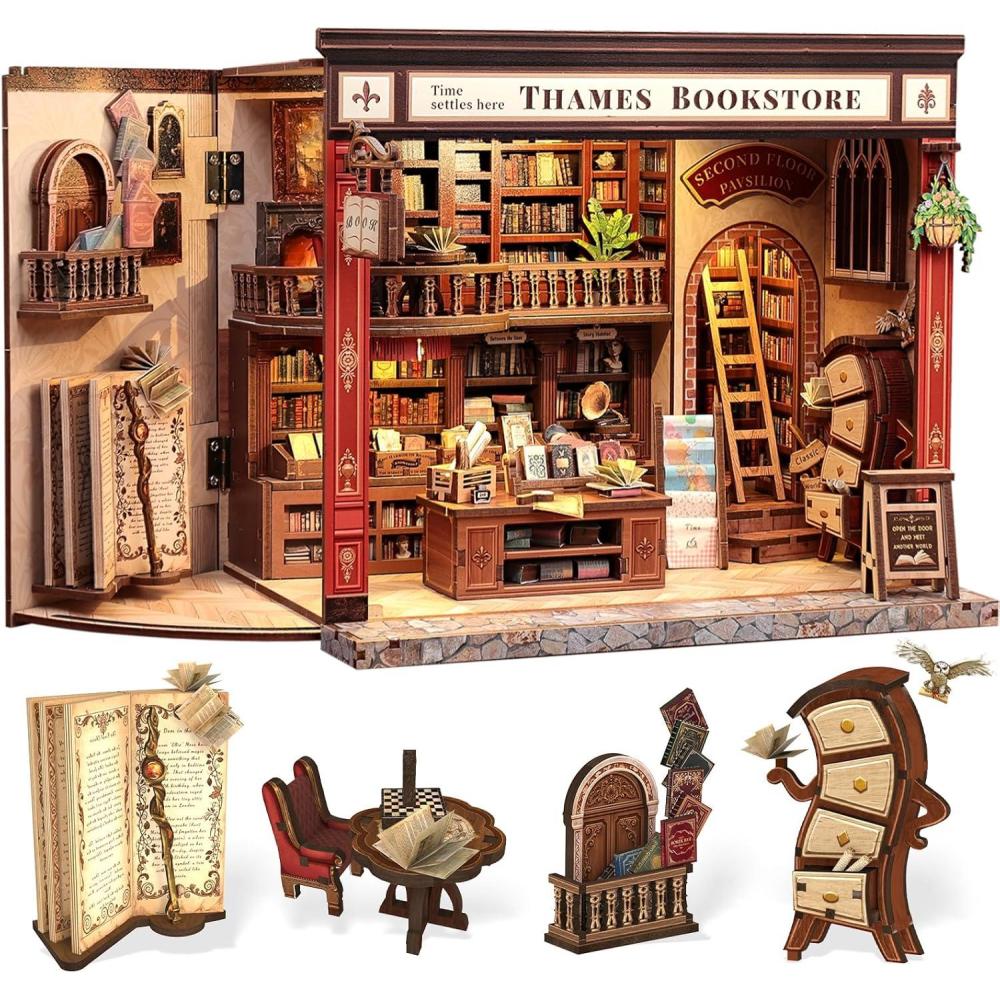 CUTEBEE Book Nook Kit – DIY Miniature House Dollhouse Kit for Adults and Teens, Booknook Tiny House Ice Cream Shop Bookshelf Decor 3D Wooden Puzzle, Gifts for Family, Friends (Bella’s Ice Cream)(Thames Bookstore)