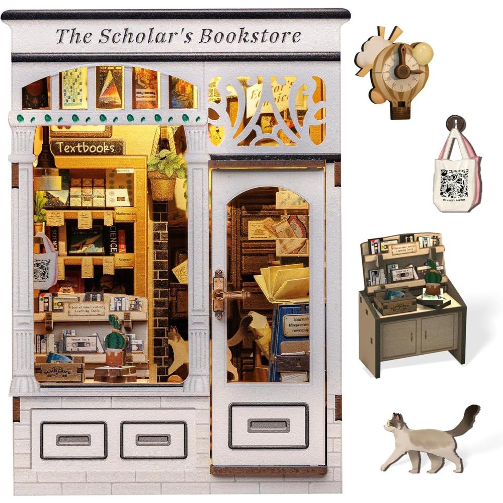 CUTEBEE Book Nook Kit – DIY Miniature House Dollhouse Kit for Adults and Teens, Booknook Tiny House Ice Cream Shop Bookshelf Decor 3D Wooden Puzzle, Gifts for Family, Friends (Bella’s Ice Cream)(The Scholar’s Bookstore)