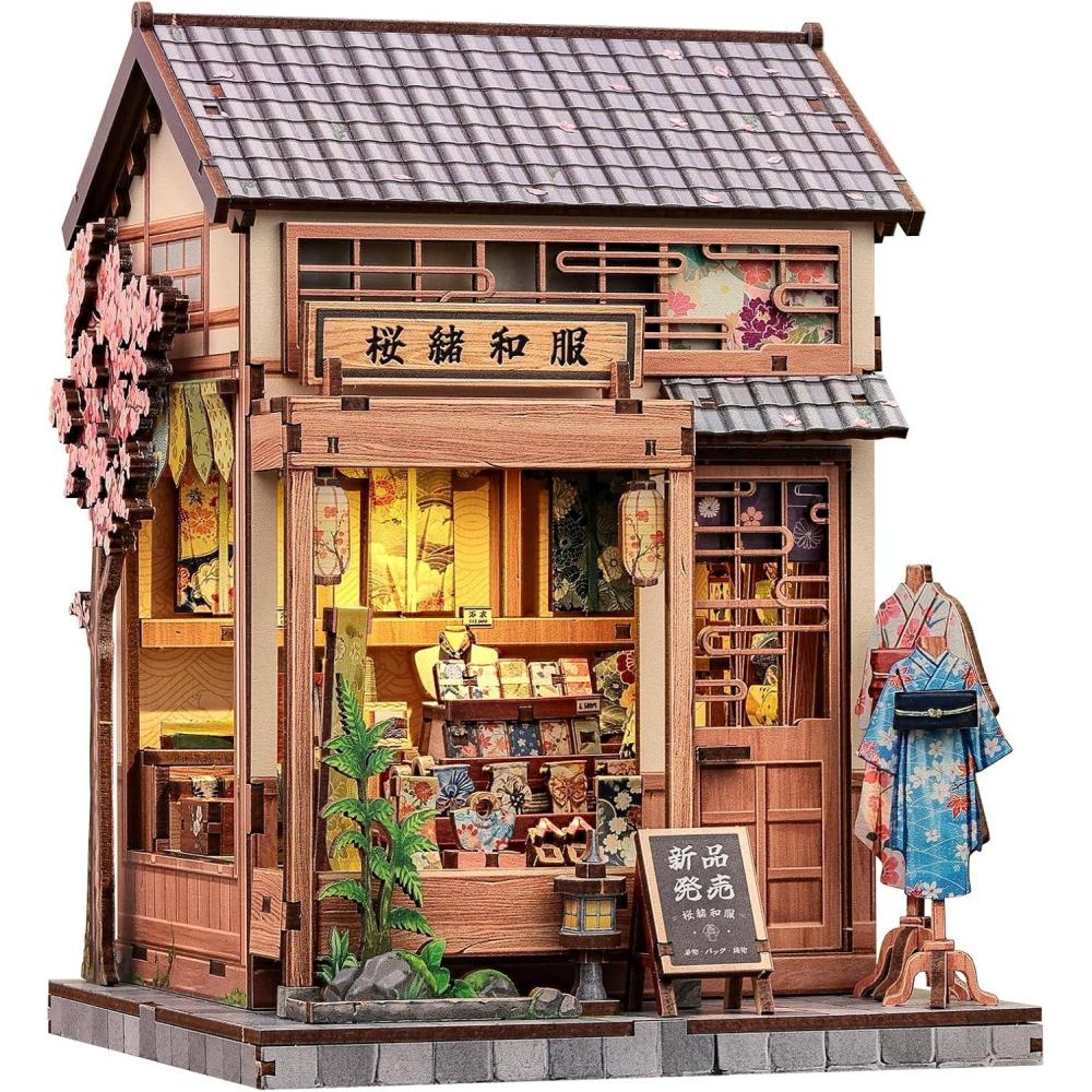 CUTEBEE Book Nook Kit – Japanese Sakura Kimono Shop DIY Dollhouse 3D Wooden Puzzle Booknook for Adults and Teens, Miniature House Bookshelf Decor, Ideal Gift for Family and Friends