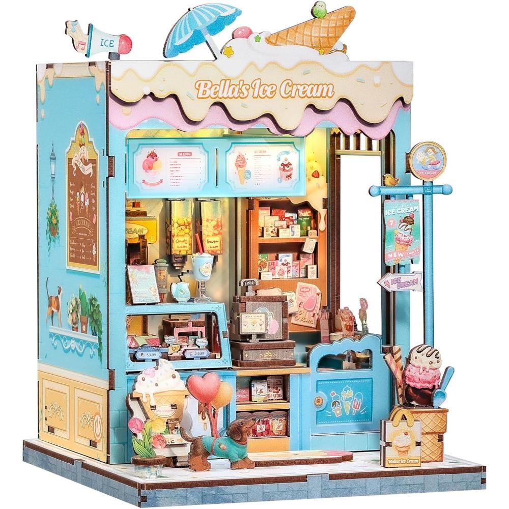 CUTEBEE Book Nook Kit, DIY Miniature House Kits for Adult and Teens, Dollhouse Booknook Tiny House, Bookshelf 3D Wooden Puzzle, DIY Craft Gifts for Family and Friends (Bella's Ice Cream)(Bella's Ice Cream)