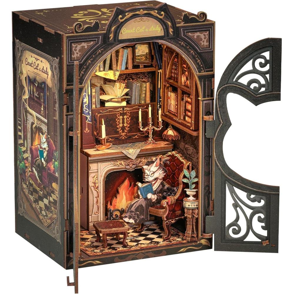 CUTEBEE Book Nook Kit, DIY Miniature House Kits for Adult and Teens, Dollhouse Booknook Tiny House, Bookshelf 3D Wooden Puzzle, DIY Craft Gifts for Family and Friends (Bella's Ice Cream)(Count Cat's Study)