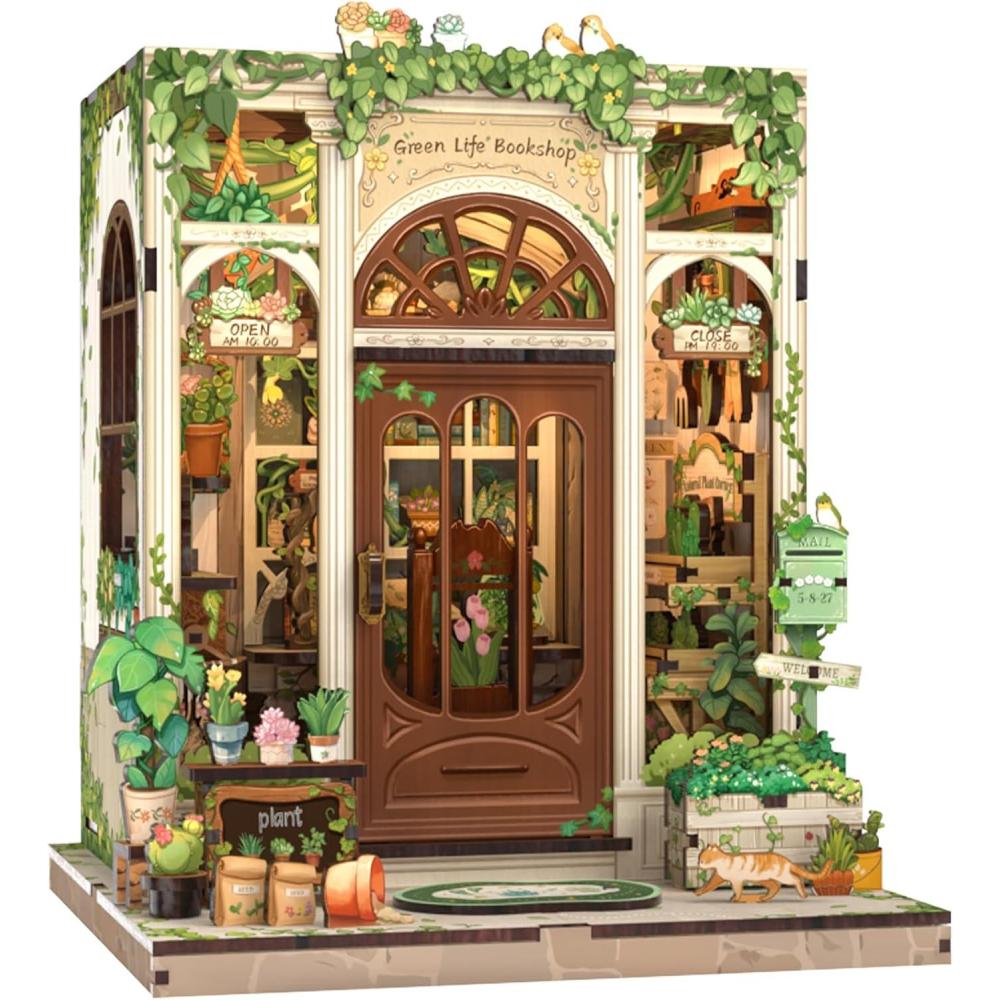 CUTEBEE Book Nook Kit – DIY Miniature House Dollhouse Kit for Adults and Teens, Booknook Tiny House Bookshelf Decor 3D Wooden Puzzle, Gifts for Family Friends (Drama Bookshop)(Green Life Bookshop)