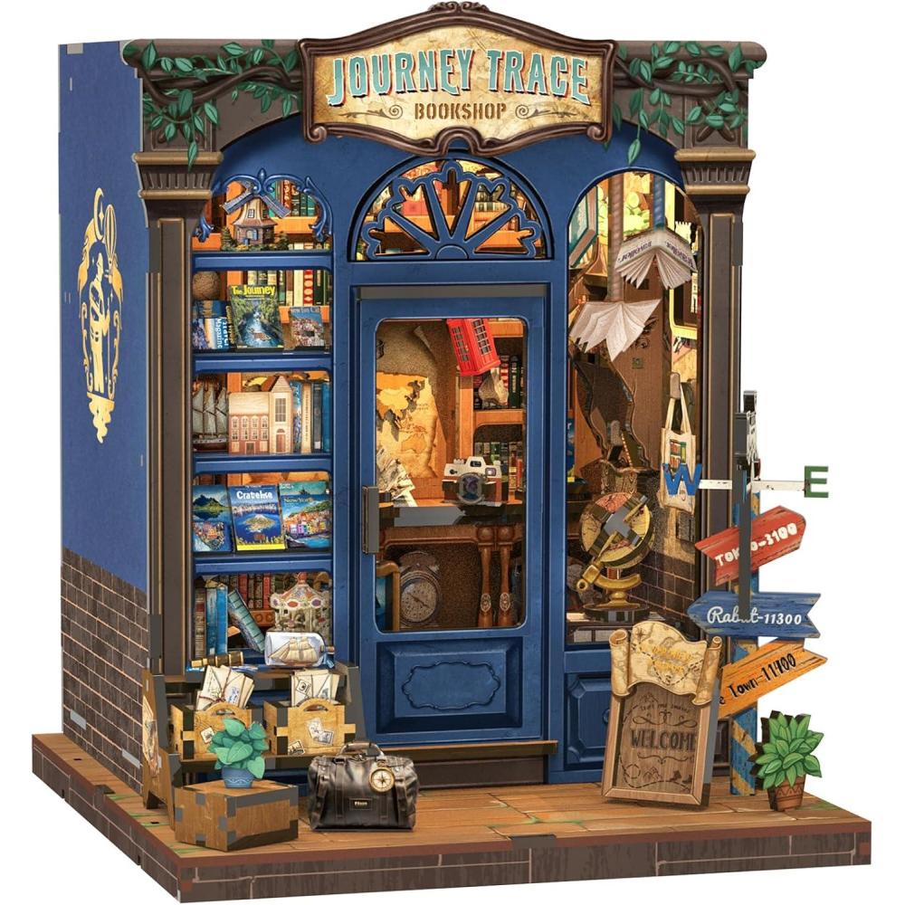 CUTEBEE Book Nook Kit – DIY Miniature House Dollhouse Kit for Adults and Teens, Booknook Tiny House Bookshelf Decor 3D Wooden Puzzle, Gifts for Family Friends (Drama Bookshop)(Journey Trace Bookshop)