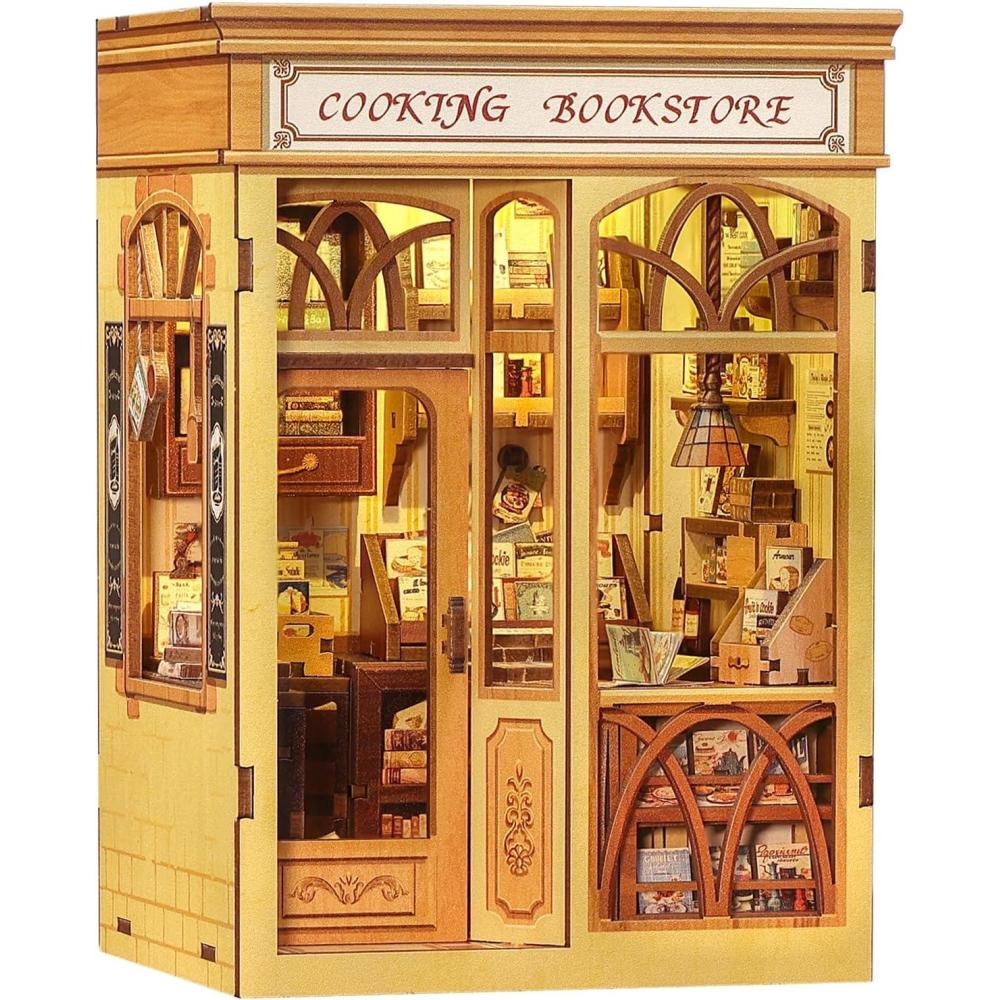 CUTEBEE Book Nook Kit – DIY Miniature House Dollhouse Kit for Adults and Teens, Booknook Tiny House Bookshelf Decor 3D Wooden Puzzle, Gifts for Family, Friends (Blossom Florists)(Cooking Bookstore)