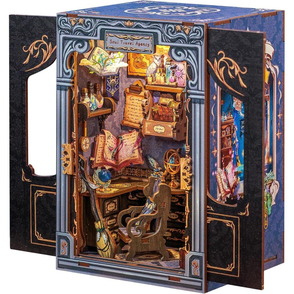 CUTEBEE Book Nook Kit – DIY Miniature House Dollhouse Kit for Adults and Teens, Booknook Tiny House Bookshelf Decor 3D Wooden Puzzle, Gifts for Family Friends (Drama Bookshop)(Soul Travel Agency)