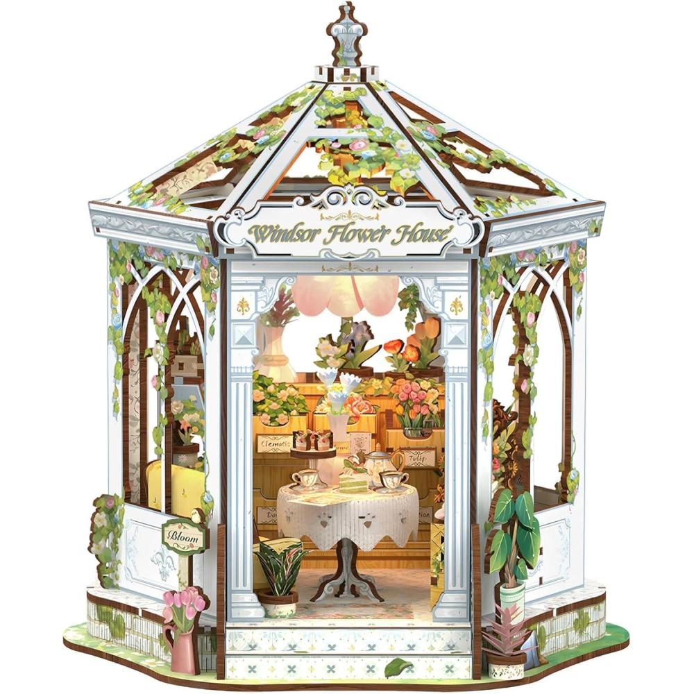 CUTEBEE Book Nook Kit – DIY Miniature House Dollhouse Kit for Adults and Teens, Booknook Tiny House Bookshelf Decor 3D Wooden Puzzle, Gifts for Family Friends (Drama Bookshop)(Windsor Flower House)