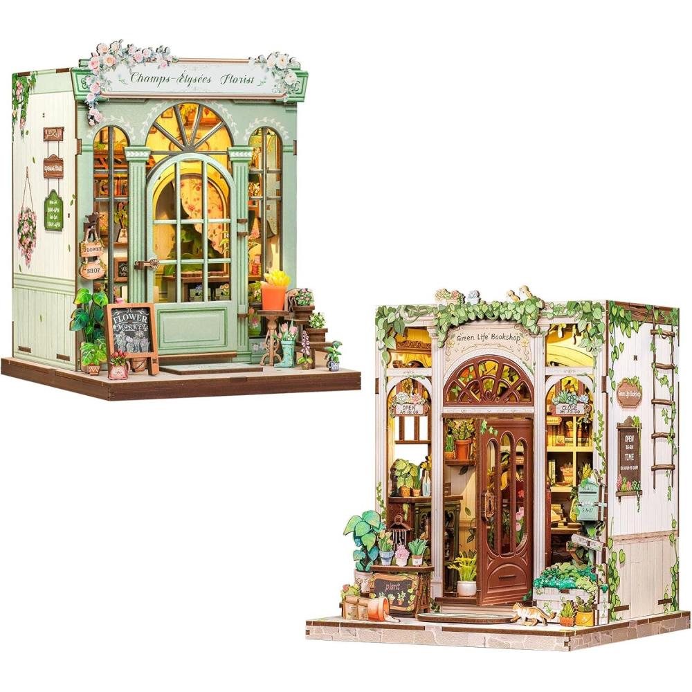 CUTEBEE Book Nook Kit – DIY Miniature House Dollhouse Kit for Adults and Teens, Booknook Tiny House Bookshelf Decor 3D Wooden Puzzle, Gifts for Family, Friends (Blossom Florists)(Eternal Bookstore)