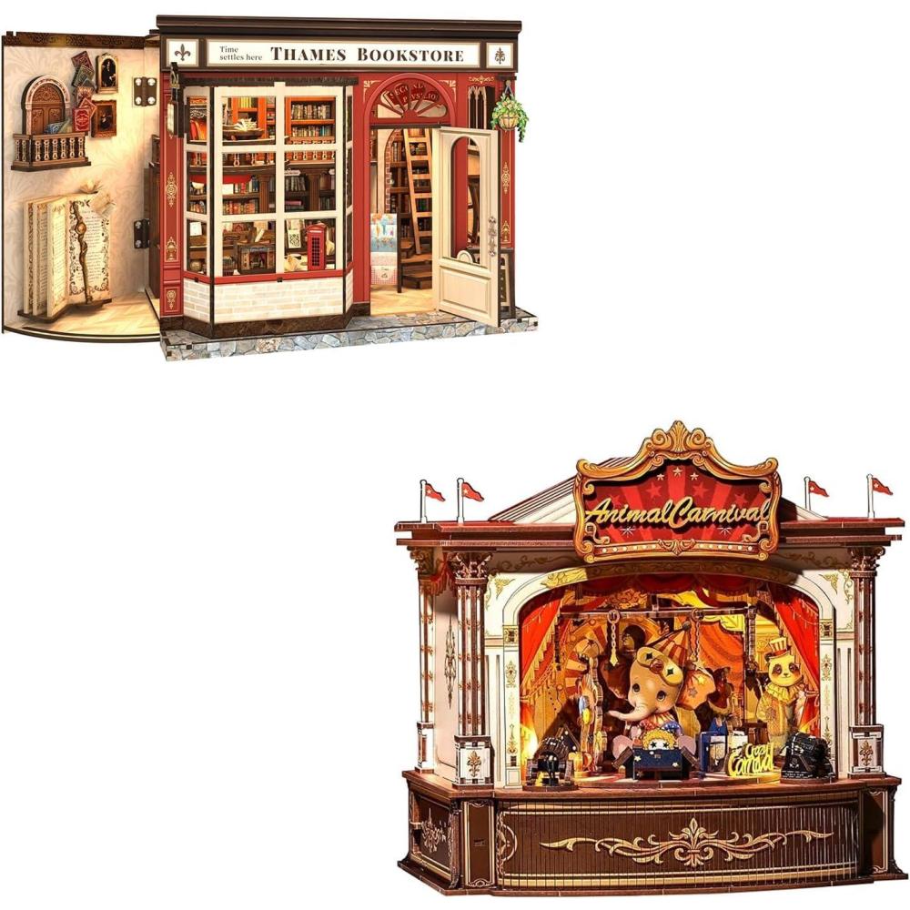 CUTEBEE Book Nook DIY Kit – Dollhouse Booknook Miniature House Kit for Adults and Teens, Tiny House Bookshelf Decor Model Build Beasts Alley
