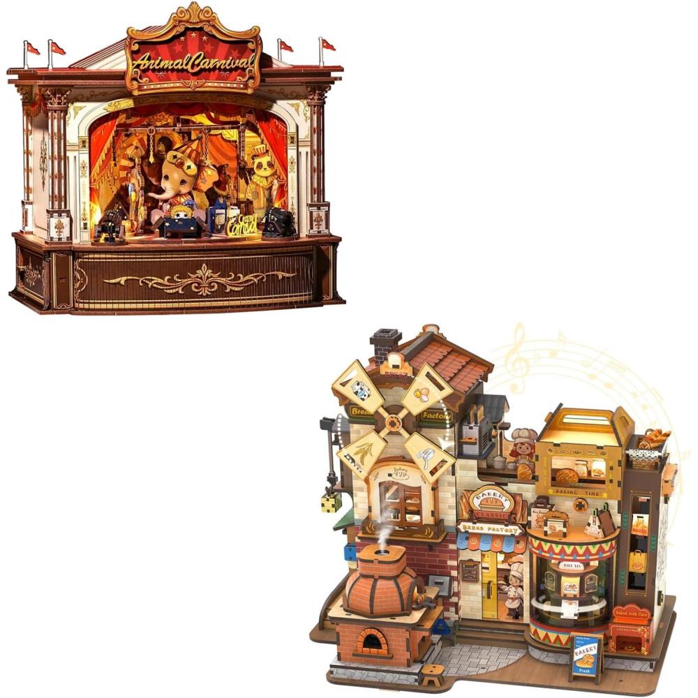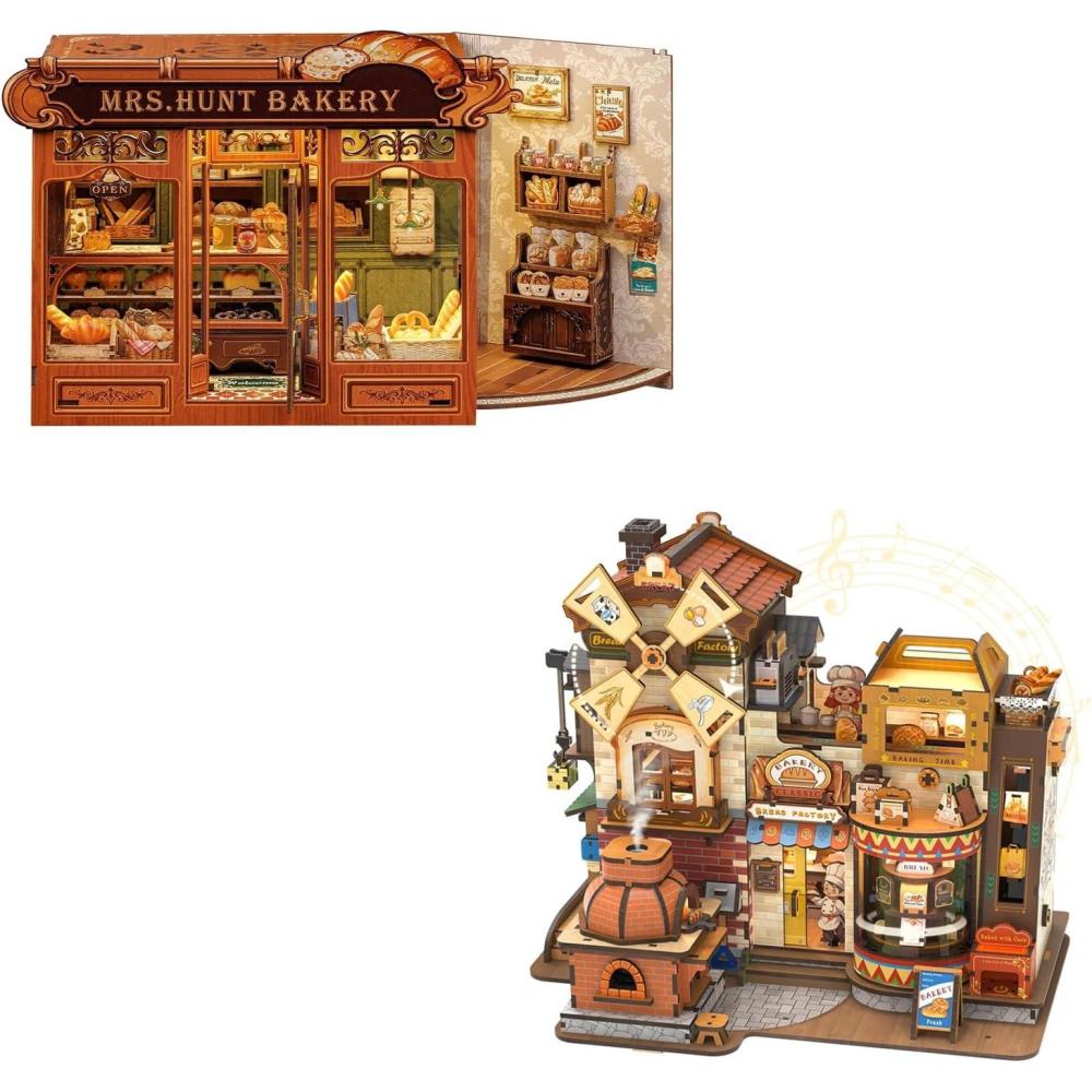 CUTEBEE 3D Wooden Puzzles for Adults – Bread Factory Bakery Wooden Mechanical Model DIY Building Kit with Music and Lights, Bookshelf Decor, 576pcs DIY Craft Gifts for Adults